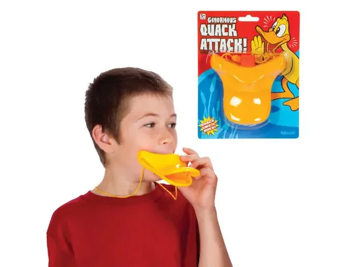 Experience the fun of making duck sounds with the Giant Duck Quacker Noise Maker! This playful noise maker features a large, vibrant duck bill shape, designed to produce hilarious quacking sounds. Perfect for parties, events, or just for fun, it comes equipped with a durable nylon neck lanyard for easy access. Recommended for ages 5 and up, this product offers endless entertainment.