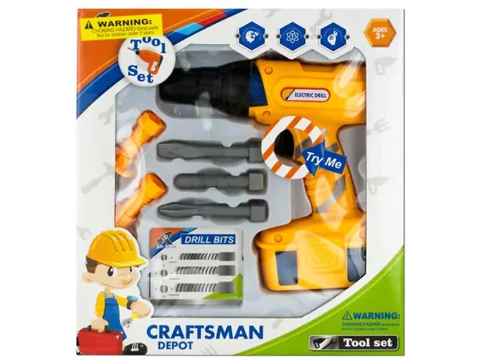 Introduce your little ones to hours of creative play with the Interactive Kids' Electric Drill Toy Set. This engaging set includes a battery-powered plastic drill that features a spinning tip, along with various plastic drill bits and bolts. It's perfect for enhancing hand-eye coordination while sparking imagination. Designed for children ages 3 and up, this toy requires 2 'AA' batteries (not included) and comes neatly packaged in an individual box. Box dimensions are approximately 10" x 2.5" x 10.625".
