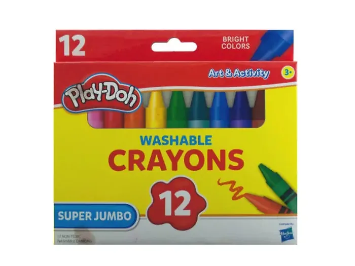 Encourage creativity with the Play-Doh Jumbo Washable Crayons Set. This set includes 12 vibrant, jumbo-sized crayons that are perfect for little hands and enhance imaginative play. Made with non-toxic materials, these crayons are designed for safe use by children aged 3 and up. They come neatly packaged in a convenient hanging box, measuring approximately 5.375" x 0.5" x 4.875".
