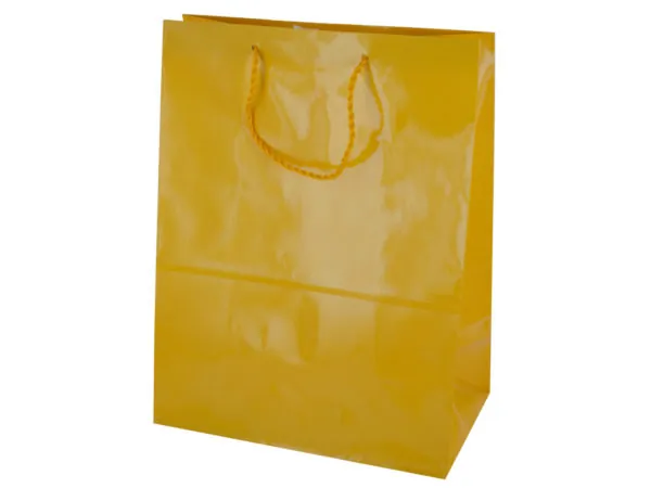 Crafted from high-quality glossy paper, it features sturdy red twisted nylon handles for easy carrying. Measuring approximately 9.5" x 5.25" x 12.5", it’s spacious enough for a variety of gifts.