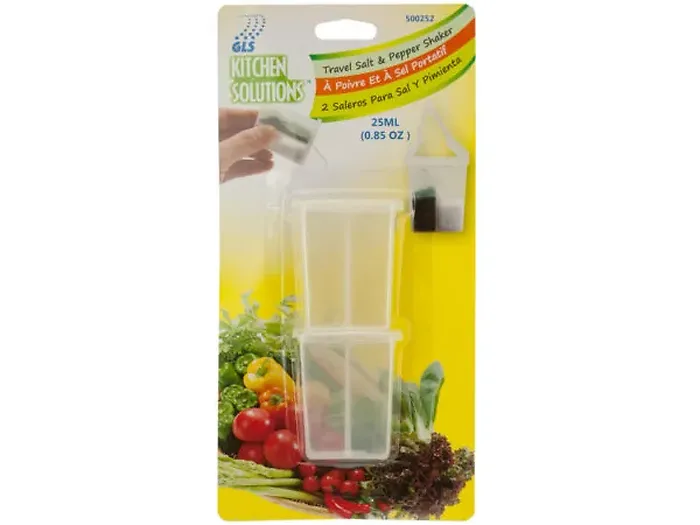 Enhance your outdoor dining experience with this Compact Travel Salt & Pepper Shaker Set. Ideal for picnics, camping trips, or lunchboxes, this 2-piece set features clear plastic containers that showcase the contents while ensuring durability. The lids snap securely in place to prevent spills, making it perfect for on-the-go seasoning.