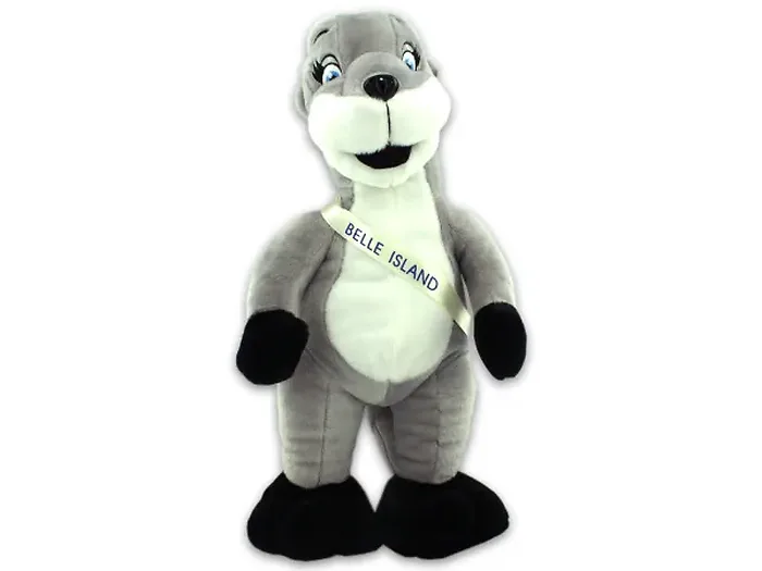 The Belle Island plush otter is an adorable toy that makes a perfect gift for birthdays and special occasions. Measuring 17.5" tall, this charming otter is grey and features a delightful sash that reads "Belle Island." It’s not just a toy; it’s a keepsake that brings joy and warmth!