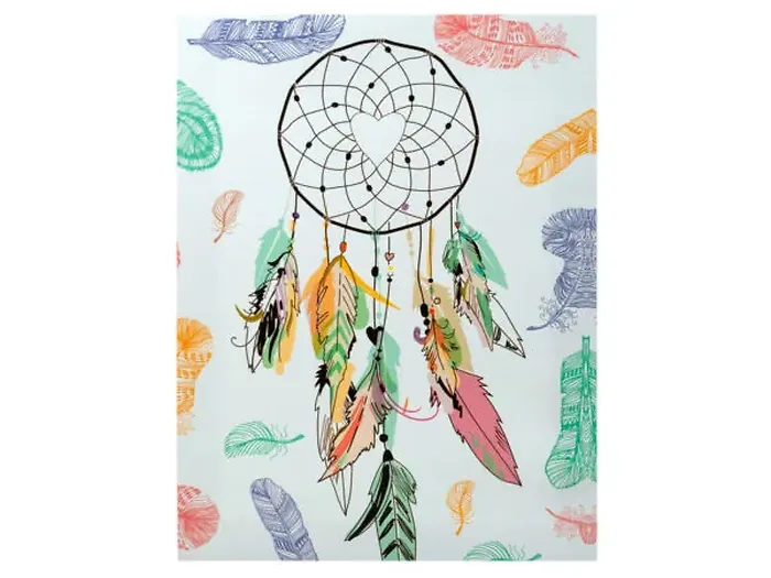 Perfect for room and home decor. This 11" x 7.5" Dream catchers Canvas Art is excellent to hang, or places on a flat surface and to lean against the wall. Its colorful feathering pattern adds happy vibes to your room. The canvas comes shrink-wrapped packaged.