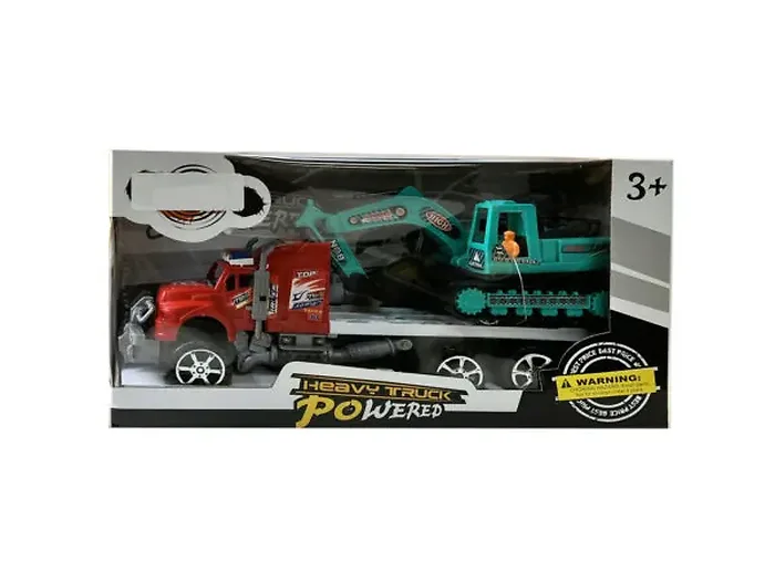 Kids will love creating their own construction sites with this 2-in-1 Friction-Driven Excavator Truck with Trailer Set. The semi-truck is adorned with vibrant decals, can carry a powerful digging excavator, and is perfect for both outdoor play in the dirt or indoor adventures in their room. The moveable friction trailer truck will provide hours of entertainment and imaginative play.