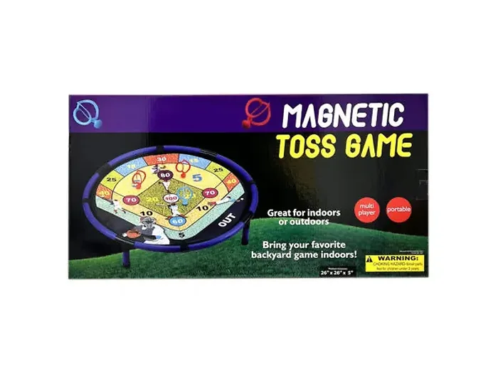 The Outdoor Magnetic Toss Game is an exciting, baseball-themed experience designed for enjoyable competition among family and friends. This trampoline-style game features a magnetic game mat designed like a baseball field, where players aim to toss markers and score points. It offers endless fun with high score challenges, head-to-head matches, and team play, making it perfect for picnics or beach outings.
