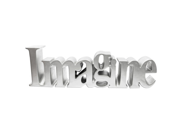 Create a warm and inviting living space with this Champagne Gold Tabletop Resin Word Decor IMAGINE. This adorable decorative piece is made with resin and is painted in soft champagne gold color. Great for decorating your office desk, fireplace mantle, coffee table, and more! Use this heavy piece as a paperweight or as an everyday inspirational piece in your home. Makes a thoughtful gift. This cute word decor sign measures approximately 10"x3". Comes packaged loose.