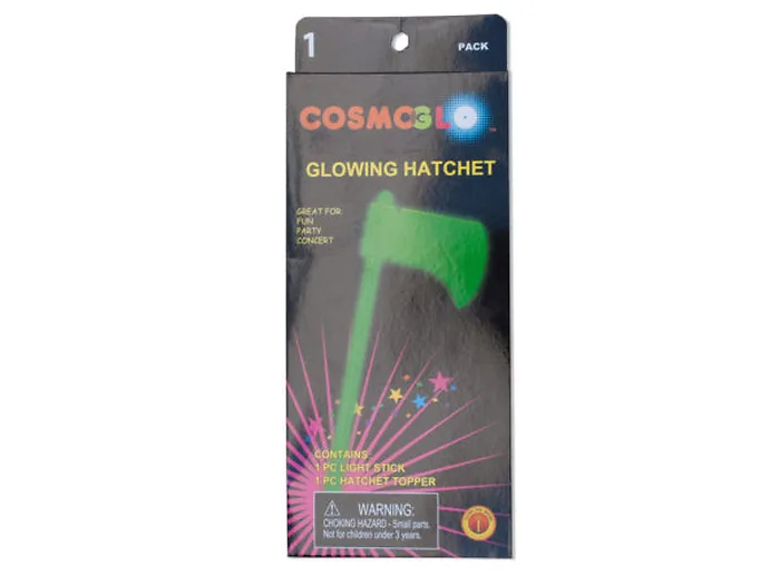 Great for Halloween, parties, and concerts, this Glow Viking Axe & Hatchet makes any event more festive. Each pack includes one glow light stick and one Viking axe topper. It is not recommended for children under 3. Comes packaged in a hanging box and assorted colors.