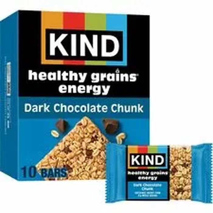 Marketing Information:Discover all kinds of good with KIND Dark Chocolate Chunk Healthy Grains Energy bars. Gluten-free snacks combine rich dark chocolate and five super whole grains for sustained energy: oats, millet, buckwheat, amaranth and quinoa. Enjoy chewy-yet-crunchy textures in each bite. Non-GMO Project Verified snack bars contain 21 grams of whole grains per serving with zero trans fat or sugar alcohol. Energy bars deliver tasty, healthy energy in convenient, single-serve packaging for easy on-the-go refueling.