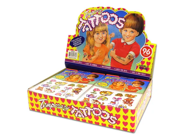Fun and Colorful Temporary Tattoos Display with 96 Pieces