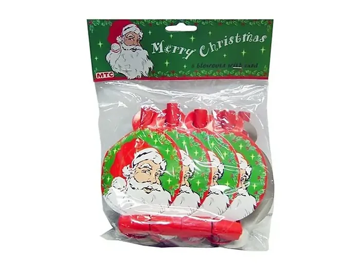 Spread holiday cheer with our set of 8 Santa Claus blowouts! Each blowout features a vibrant cardboard disk that showcases a jolly Santa and is perfect for Christmas parties and celebrations.