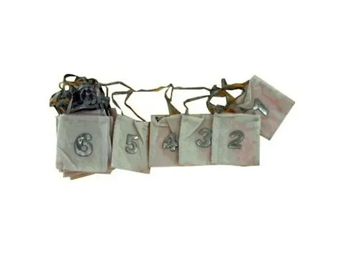 Celebrate the holiday season with this beautifully crafted Christmas countdown garland. Featuring 24 white velvet pouches, each adorned with a silver patch numbered from 1 to 24, this garland adds a touch of elegance to your festive decor. The pouches are securely bound together with a silver metallic ribbon, making it easy to hang and display. The garland measures approximately 5 feet in length, and each pouch measures 2 3/4" x 2 3/4". Perfect for holding small treats or surprises each day leading up to Christmas!