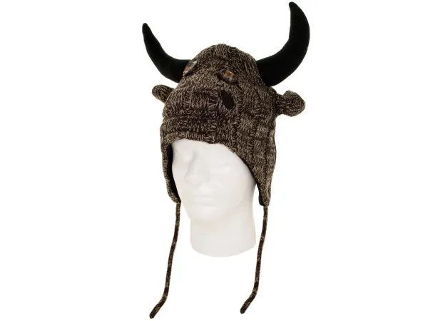 Grey and Black Owl Knit Hat with Tassels