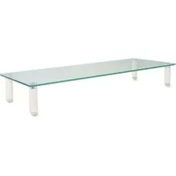 Monitor riser features a stylish, tempered glass top to elegantly display your monitor at a more comfortable height. Wide design provides ample space to hold wide monitors and offers plenty of room to place your accessories underneath. Nonskid feet prevent the riser from sliding on smooth surfaces to sit securely in place. Riser is designed to hold monitors (sold separately) up to 40 lb. in weight.