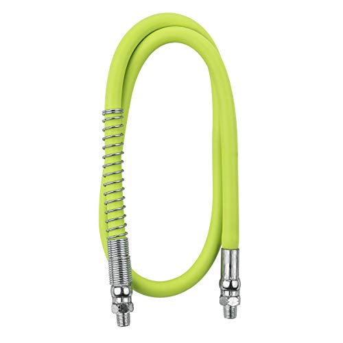 The Flexzilla Grease Hose is designed for durability and flexibility, making it ideal for all your grease dispensing needs. Its 1/8 inch diameter and 18-inch length ensure ease of use in tight spaces, while the MNPT ends provide a secure connection. The integrated spring guard enhances the hose's lifespan by preventing kinking and damage.