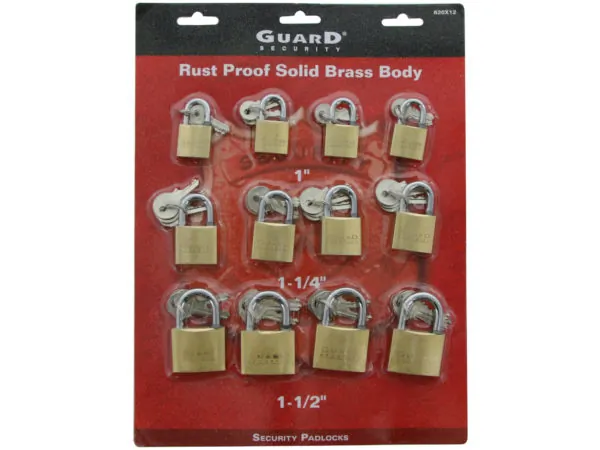 This 30mm solid brass padlock features a hardened steel shackle that is cut resistant, ensuring maximum security for your belongings. The lock comes with a pair of keys that are keyed alike for convenience. Packaged on a blister card with a hanging hole, this padlock measures 1 1/8" x 5/8" x 3/16" and has a total length of 1 7/16" when locked, making it ideal for securing lockers, cabinets, and more.