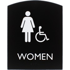 Exit sign with a curved top features a durable plastic frame to provide a sturdy display that will hold up for years. Bold, capital letters that display the word exit are colored white and raised slightly on a black background for a professional look. ADA-compliant sign also includes braille that is directly below the text to ensure everyone can read the message. Included foam tape secures instantly to surfaces for quick display in a visible location.
