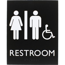 Lorell Exit Sign - 1 Each - 4.5 Width x 6.8 Height - Rectangular Shape - Easy Readability, Braille - Plastic - Black