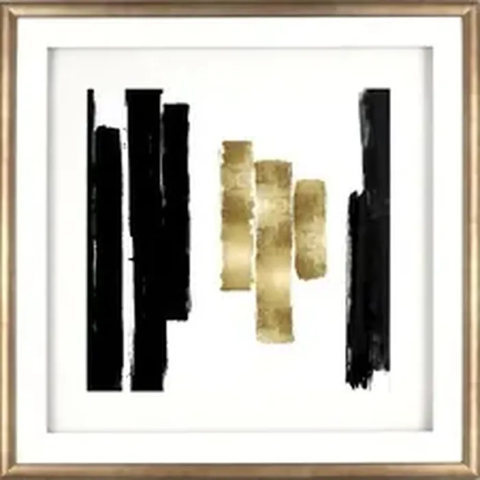 Lorell Blocks Design Framed Abstract Artwork - 29.50 x 29.50 Frame Size - 1 Each - Black, Gold