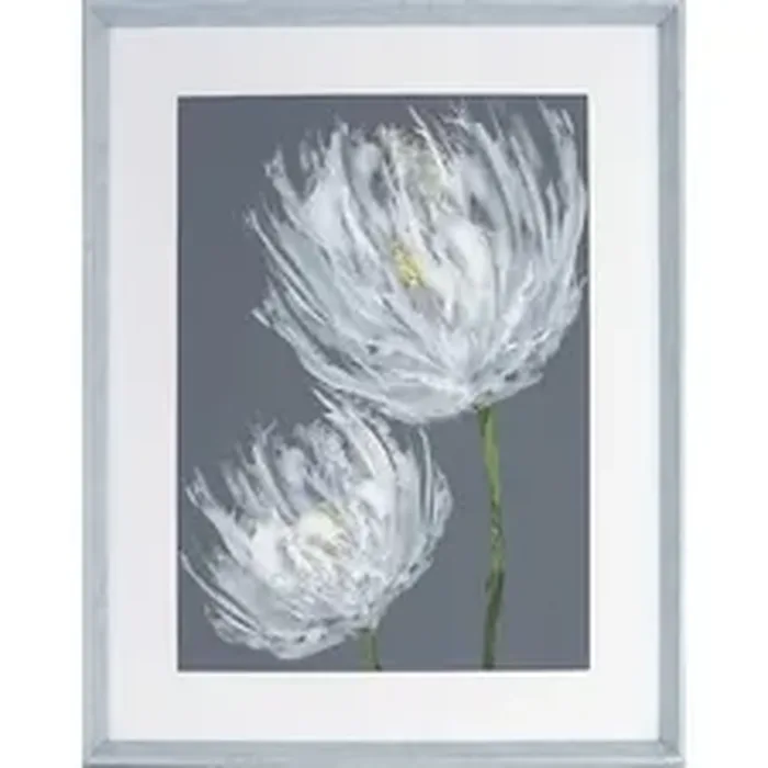 Lorell White Flower Design Framed Abstract Art - 27.50 x 35.50 Frame Size - 1 Each - Gray, White