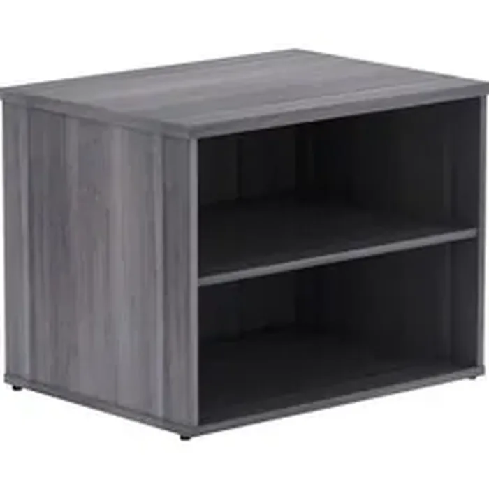 File cabinet credenza without doors is part of the Lorell Relevance Series, versatile and stylish office furniture that configures to meet your needs. Weathered Charcoal laminate exterior matches other units in the series for a cohesive, professional look. Low cabinet provides two open shelves for flexible storage. Adjustable leveling feet help keep the credenza even on uneven surfaces.