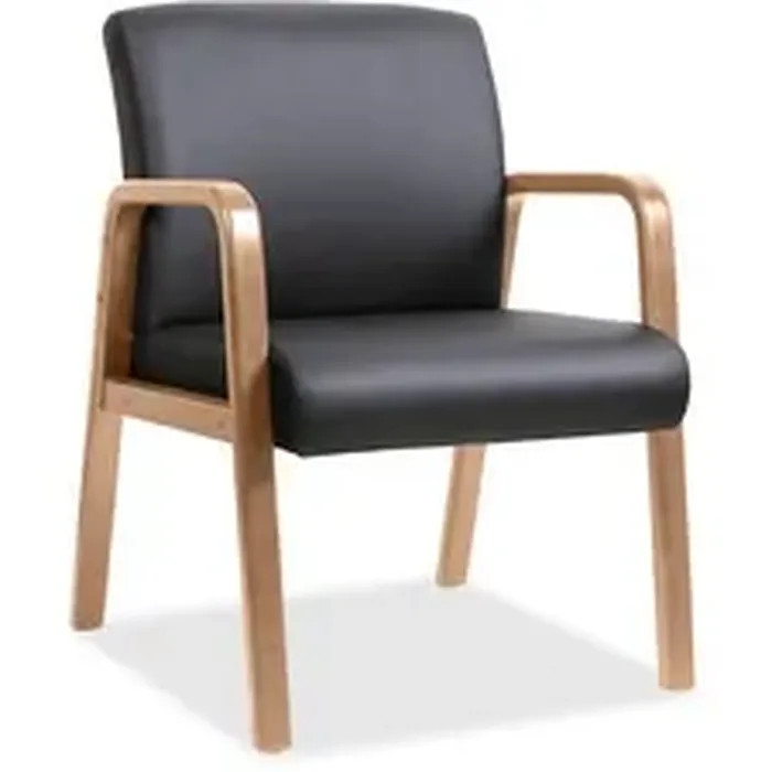 Lorell Guest Chair - Black Bonded Leather Seat - Black Bonded Leather Back - Solid Wood, Rubberwood Frame - Four-legged Base - Walnut - Armrest - 1 Each