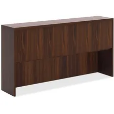 Lorell Chateau Series Walnut Laminate Desking - 66.1 x 14.8 x 36.5Hutch, 1.5 Top - Drawer(s)4 Door(s) - Reeded Edge - Material: P2 Particleboard - Finish: Walnut, Laminate