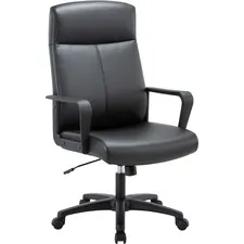 Lorell Leather Deluxe Big/Tall Chair - Black Bonded Leather Seat - Black Bonded Leather Back - 5-star Base - Black - 1 Each