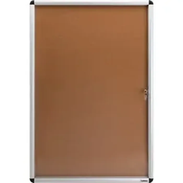 Enclosed bulletin board lets you clearly display information tacked to the natural cork and protect it with a polystyrene cover on the locking swing door. Durable, resilient cork is self-healing so it doesn't show pinholes. The indoor design includes an aluminum frame and blends nicely with any decor. Bulletin board comes with two keys.