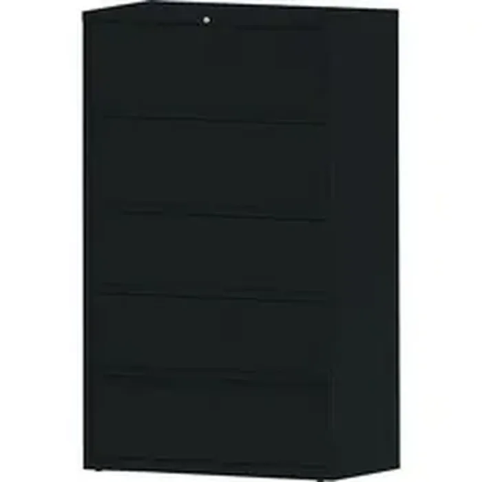 Lorell Receding Lateral File with Roll Out Shelves - 5-Drawer - 42 x 18.6 x 68.8 - 5 x Drawer(s) for File - Letter, A4, Legal - Interlocking, Heavy Duty, Ball-bearing Suspension, Leveling Glide, Recessed Handle - Black - Metal - Recycled