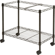 Wire file cart offers two tiers of mobile filing to organize projects anywhere in your office. Letter-size folders can be placed in two rows for front-to-back filing or one lengthwise row on each file frame. The bottom shelf can be used for storage if additional filing is not needed. File frames accommodate both letter-size and legal-size hanging file folders. Wire cart is made of sturdy steel construction with a scratch-resistant, powder-coat finish. Two of the four swivel casters lock so you can secure the cart by your desk or file cabinet with no concern of it rolling away.