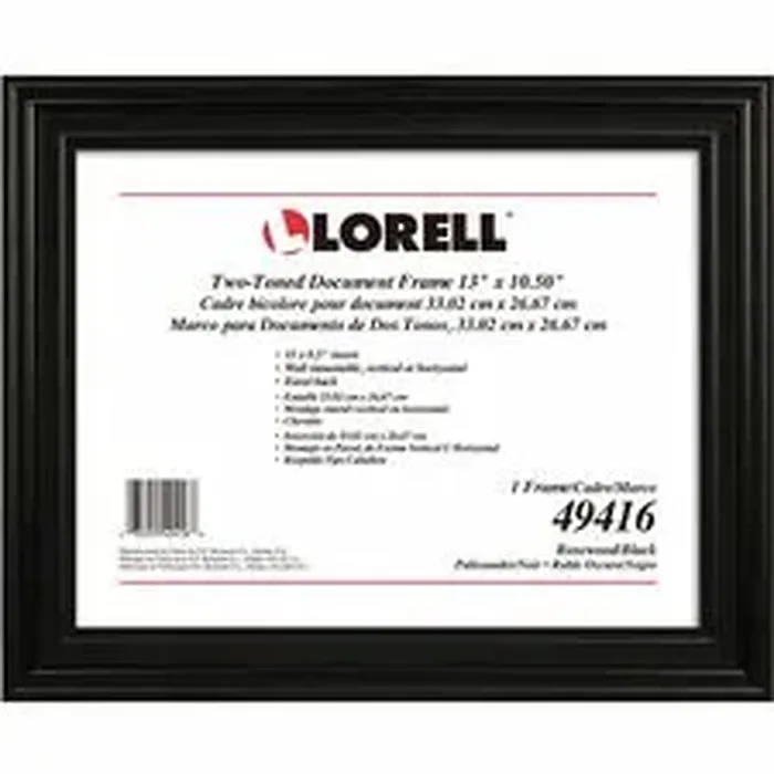 Lorell Two-toned Certificate Frame - 13" x 10.50" Frame Size - Desktop, Wall Mountable - Vertical, Horizontal - Black - 1 Each