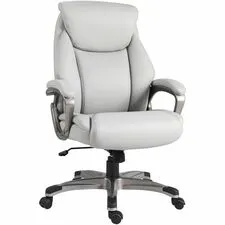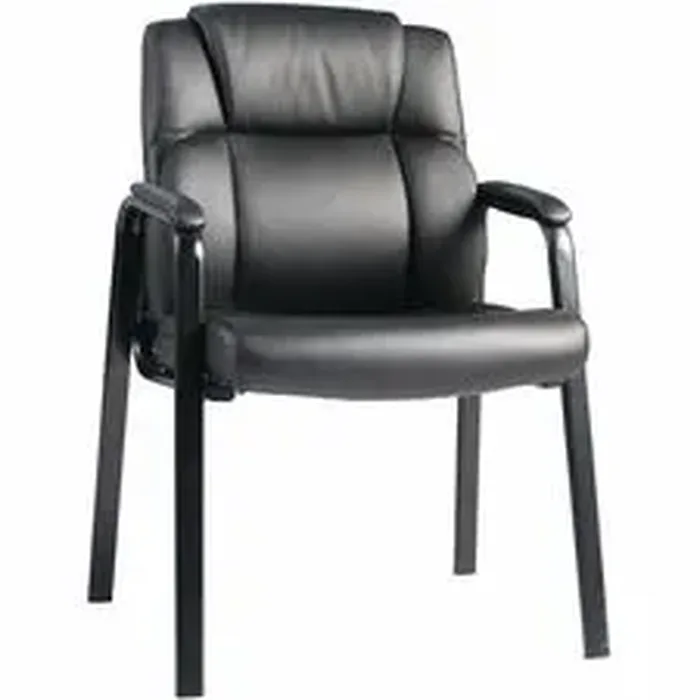 Guest chair coordinates with Lorell High-back Chairs for luxurious comfort in your waiting room or office. Both cushioned seat and back are elegantly upholstered with leatherlike polyurethane. Loop fixed arms feature upholstered pads for extra comfort. Durable steel frame features a four-leg base and powder-coated finish. Seat is 20-5/8" wide x 16-1/2" deep x 20-1/4". Back measures 20-1/2" wide x 16-3/4" high. The 25-5/8" high arms offers a 19-1/2" wide distance between them.