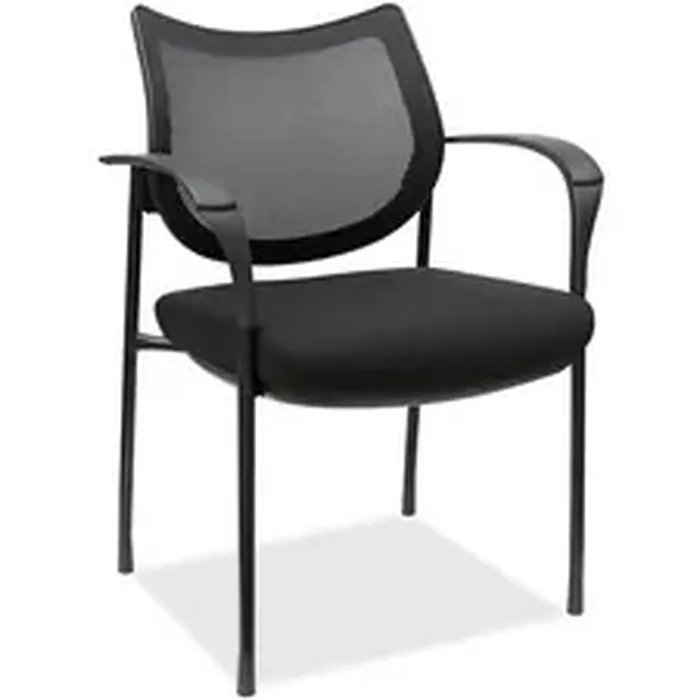 Lorell Mesh Back Guest Chair - Fabric Seat - Plastic Frame - Black - Armrest - 1 Each