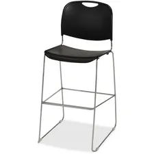 Heavy-duty chairs with foot bar offer a bistro-height perfect for cafes and standing-height tables and worksurfaces. The seat and back are made of an injection-molded plastic for easy-to-clean seating. Waterfall seat front helps promote good blood circulation. Small, convenient slot in the top of the back makes it easy to place and relocate chairs. Frame is made of sturdy, thick steel with a black finish. Weight capacity is 250 lb.