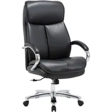 Mid-back chair offers bonded a leather-upholstered seat, breathable suspension mesh on the back for conforming comfort as well as built-in lumbar support that easily adjusts for ergonomic positioning. Big & Tall design allows a 400 lb. capacity. Arms with soft polyurethane pads adjust in height. Other functions include pneumatic seat-height adjustment, 360-degree swivel and tilt tension. Five-star chrome base is equipped with five heavy-duty casters for easy chair movement.