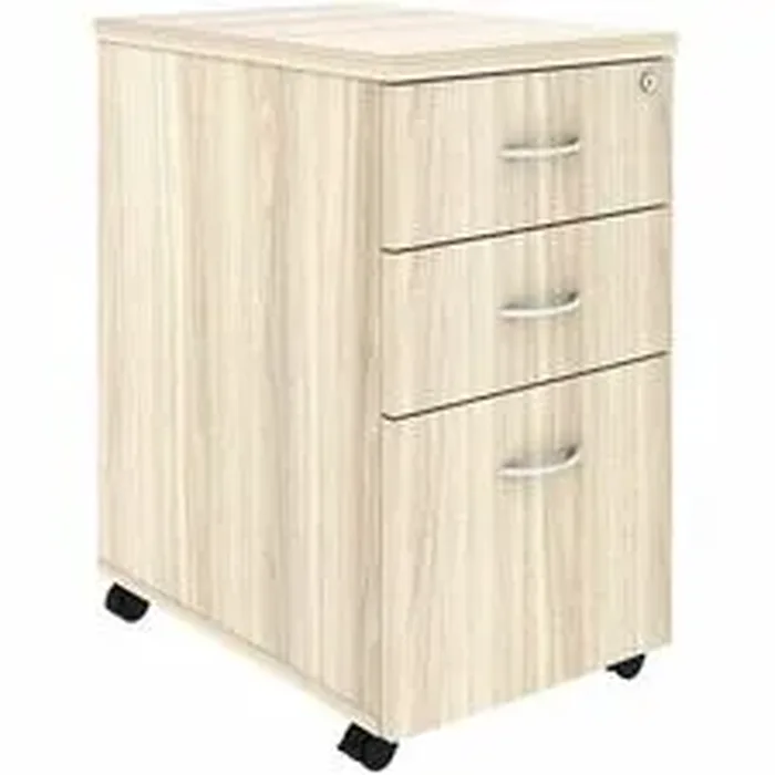 Mobile pedestal is part of Lorell Essentials Series Laminate Furniture with high-quality laminate construction and a contemporary design. It offers plenty of storage for supplies with two box drawers. Keep your frequently used file handy with the file drawer on the bottom. The file drawer includes hangrails and holds letter-size and legal-size hanging files. Pedestal rolls easily on four 1-1/2" dual-wheel casters. Design also includes Modern Elm laminate for durability, 96mm metal drawer pulls with a silver brush finish and 3mm PVC edges.