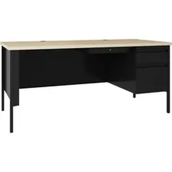 Lorell Fortress Series 66 Right Pedestal Desk - 66 x 29.5 x 30 , 0.8Modesty Panel, 1.1 Top - Single Pedestal on Right Side - Square Edge - Material: Steel, Laminate Surface - Finish: Maple Surface, Black