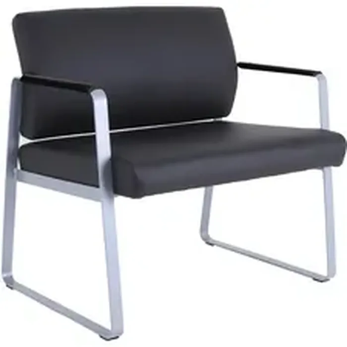 This large guest chair is specially designed for healthcare facilities. Thick seat and back cushions are upholstered in healthcare-grade, antimicrobial vinyl so the product lasts longer and it's easier to clean. Arms are padded with matching polypropylene pads for comfort. Bariatric Healthcare Guest Chair also features a steel frame powder-coated in silver and equipped with felt pads on the sled base to protect your floor. Weight capacity is 500 lb.