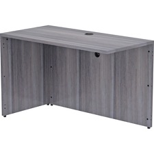 Rectangular desk shell is part of Lorell Essentials Series Laminate Furniture with high-quality laminate construction and metal-to-metal, cam-lock connections. Weathered charcoal laminate top is 1" thick for durability. Desk can be used in L-shaped configurations. Use the two grommet holes in the top for easy cord routing. Design also includes a full modesty panel for privacy, 3mm PVC edges and adjustable floor guides for stabilization. Furniture has pre-drilled holes with metal inserts for easy attachment.