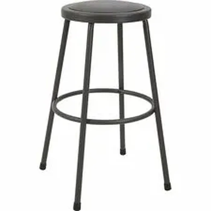 General InformationManufacturer:Lorell Manufacturer Part Number:83083 Manufacturer Website Address:http://www.lorellfurniture.com Brand Name:Lorell Product Name:Metal Shop Stool Marketing Information:Metal Shop Stool is ideal in the shop, garage, science/art lab, factory floor or anywhere else where durability matters most. It stacks to save place. Backless design offers 360-degree access for easier seating. Riveted to the seat pan at 30" high, the padded vinyl seat stays in place. Built-in foot ring provides a place to rest your feet when seated. Nonmarring floor glides protect your floors when you need to slide it to the next workstation. Weight capacity is 275 lb. Stool meets or exceeds ANSI/BIFMA standards. Packaged Quantity:1 Each Product Type:Sitting Stool