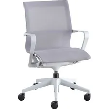 Executive high-back chair features a mesh back, mesh fabric seat and ergonomically designed high back design for the natural curvature of a person's back. Arms adjust in height and width. Seat height from floor adjusts from 17" to 21". High-back chair offers a nylon five-star base, pneumatic seat-height adjustment, 360-degree swivel, tilt and asynchronous three-lever control. Weight capacity is 250 lb. High-back chair is available in black frame only and meets the CA117 fire-retardant standard.