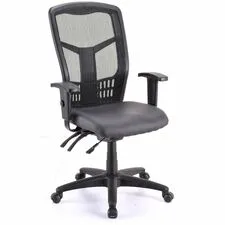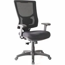 Managerial mid-back chair features a breathable mesh back chair, fabric seat and ratchet back to enhance your comfort. Mesh is made of high-strength elastic nylon. Ergonomically designed mid-back matches the natural curvature of a person's back. Seat and back angle can be adjusted and locked independently. Arms adjust in height (25-3/5" to 29") and in width (24" to 26"). Functions include pneumatic seat-height adjustment (18" to 21-2/3" high from the floor), 360-degree swivel, seat slider for seat depth adjustment, tilt and asynchronous three-lever control. Black frame has five-star, reinforced nylon base (26" diameter) with casters for easy mobility. Seat size is 20" wide x 18-7/10" depth. Back measures 20" wide (at the widest portion) x 19-7/10" high. Weight capacity is 250 lb. Chair meets the CA117 fire-retardant standard and BIFMA standards.