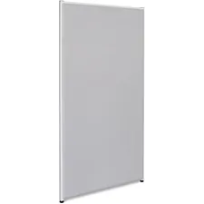 Fabric panels create just the configuration you need with a height of 72" for more privacy. Semi-tackable gray fabric walls help block sound and provide privacy. Each panel includes adjustable glides for better leveling. Sturdy frame is made of durable, powder-coated steel. Versatile connectors to secure panels and panel shelf to add overhead storage are sold separately.