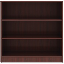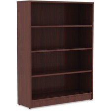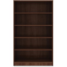 Sturdy, five-shelf bookcase offers high-quality laminate construction and a contemporary design. Shelves are 3/4" thick and made of 18mm thick, medium-density fiberboard with thermally fused, Mahogany laminate for long-lasting use. The visible, one-piece backing behind the shelves is made with 3mm thick, medium-density fiberboard and matching laminate. Both sides are finished. Bookcase features four adjustable shelves, one fixed bottom shelf, square edges and adjustable feet. Each shelf holds up to 75 lb.