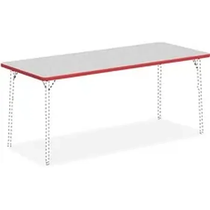 Versatile Activity Tabletop is great for creating collaborative learning environments in classrooms, training rooms, conference rooms and more. Sturdy, rectangular top is 1-1/8" thick. Table edges are cushioned with protective, red edgebanding. The Grey Nebula, high-pressure laminate finish offers a smooth, durable worksurface. Activity Table Legs, the four-leg base, adjust in height from 22" to 30" or 17" to 25" in 1" increments and are sold separately.