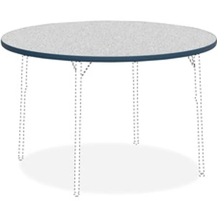 Versatile Activity Tabletop is great for creating collaborative learning environments in classrooms, training rooms, conference rooms and more. Sturdy, round top is 1-1/8" thick. Table edges are cushioned with protective, navy edgebanding. The Grey Nebula, high-pressure laminate finish offers a smooth, durable worksurface. Activity Table Legs, the four-leg base, adjust in height from 22" to 30" or 17" to 25" in 1" increments and are sold separately.