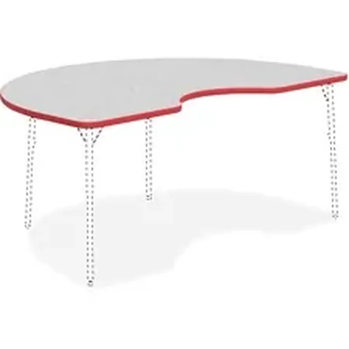 Versatile Activity Tabletop is great for creating collaborative learning environments in classrooms, training rooms, conference rooms and more. Sturdy, kidney-shaped top is 1-1/8" thick. Table edges are cushioned with protective, red edgebanding. Kidney shape offers a place for the teacher at the table. The Grey Nebula, high-pressure laminate finish offers a smooth, durable worksurface. Activity Table Legs, the four-leg base, adjust in height from 22" to 30" or 17" to 25" in 1" increments and are sold separately.