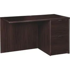 Bridge is part of the Lorell Prominence 2.0 Series that offers an elegant design perfect for your executive office suites. Durable, Espresso laminate surface is mar-resistant, burn-resistant and impact-resistant to withstand hectic, daily work life. The 1" thick top features matching 3mm edgebanding. Bridge is manufactured with 45 lb. density particleboard and finished on both sides with high-performance, thermally fused melamine. It is not freestanding and not shipped fully assembled like the other items in the series. Pair the bridge with single-pedestal desks to create L-shaped or U-shaped configuration to suit your office needs. The 3/4" adjustable glides allow the bridge to remain level on uneven surfaces. Grommet in the top allows convenient cord management.
