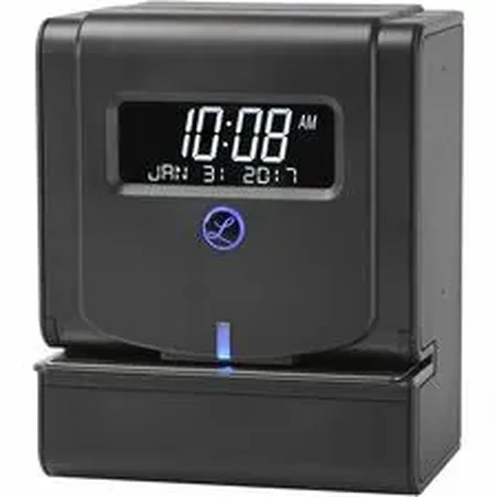 General InformationManufacturer:Lathem Time Company Manufacturer Part Number:2100HD Manufacturer Website Address:http://www.lathem.com Brand Name:Lathem Product Name:2100HD Heavy Duty Thermal Print Time Clock Marketing Information:Thermal print time clock features WhisperPrint technology that eliminates the need for print ribbons to provide maintenance-free operation. Heavy-duty construction is made of durable steel and ABS materials that allow it to withstand harsh environments and high cycle volume use. High-contrast LCD clearly displays the time and date for easy visibility. Automatic printing allows simple, one-handed operation for convenient use. Tru-Align technology senses when the time clock's printer is aligned correctly with the proper space on the time card to ensure that your employees make the perfect-punch on their time cards every time. Innovative rotary knob lets you quickly set up print formats, set time formats and select English, French or Spanish language settings all in less than 5 minutes. SmartClock technology with perpetual calendar retains your time, date and settings during power outages, and auto-adjusts for Daylight Saving Time and Leap Years. Packaged Quantity:1 Each Product Type:Electronic Time Clock