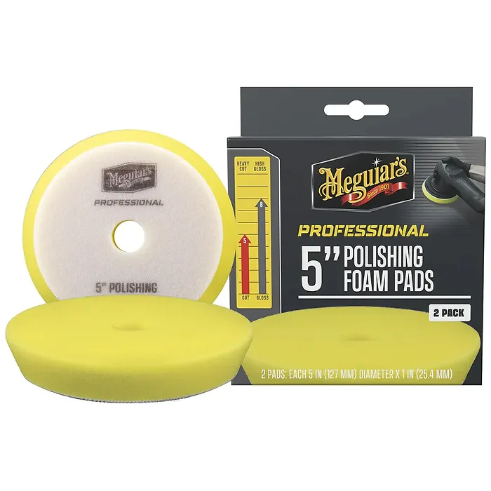 Meguiar's 5" Polishing Foam Pads - 2 Pack Elevate your paint correction process with Meguiar's Professional 5" Foam Polishing Pads, offered in a convenient 2-pack. These advanced foam pads efficiently eliminate light to moderate imperfections, such as scratches, swirl marks, sanding marks, and acid rain spots. Crafted with innovative foam technology, these pads are designed to remove defects while avoiding swirl marks, ensuring a flawless finish. Pair them with your preferred car polishing compound to achieve remarkable results. Built with sustainability in mind, each pad is washable and reusable, offering a long-lasting solution to your detailing needs while minimizing waste. Discover the difference with Meguiar's 5" Foam Polishing Pads in your detailing arsenal.<\/p>